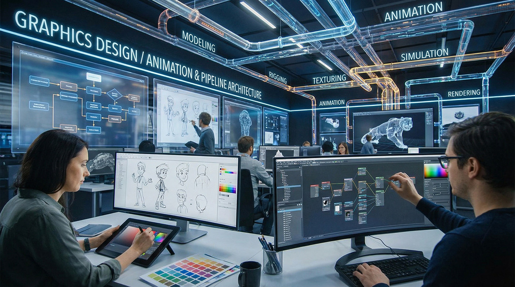Pipeline Architecture in 3D animation is a system that organizes the workflow of creating 3D animation products or assets, such as feature films, short films, television shows, or video games.